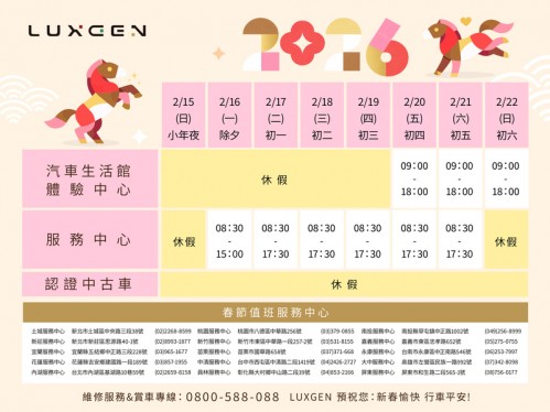 2026 LUXGEN 與你同行 走春賞車迎新年 春節服務不打烊