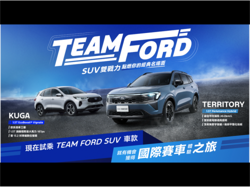 全民一起TEAM FORD 本月試乘Territory & Kuga 限時加碼抽國際賽車體驗之旅