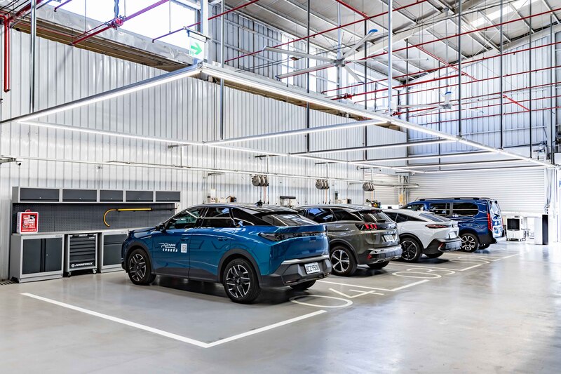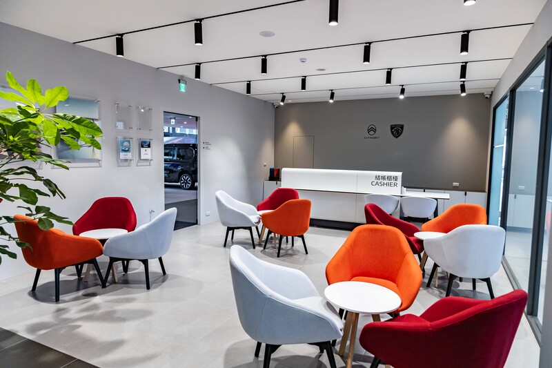 以超過 900 坪的寬敞場域,打造從展示、維修到交車全流程的一站式高規格體驗。展示空間以精品設計呈現 Alfa Romeo、CITROËN、Jeep、PEUGEOT 四大品牌的獨立展示區,利用光影、材質與場景配置強化各品牌風格,使消費者得以沉浸式方式感受四種截然不同的品牌文化。服務廠則導入原廠認證的診斷系統、進口頂車機與專屬維修工位,以符合原廠高標準規格提供專業且高效率的維修技術;同時,客休區設置透明維修視窗,讓車主能以公開透明的方式安心觀察整個作業流程。此外,「台中旗艦品牌中心」設置超過 315 坪的專屬停車區,提供充足且便利的停車空間,讓消費者在賞車與返廠動線上更加順暢無虞。