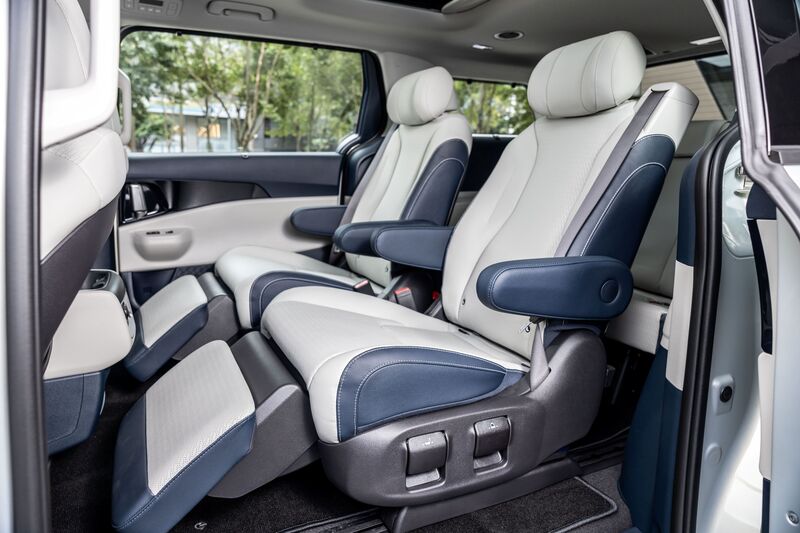 Kia全功能豪華休旅The new Carnival結合SUV與MPV雙重優勢,以「Grand Design卓然大器」、「Grand Luxury超凡尊榮」、「Grand Technology極智未來」三大產品DNA,以及跨越級距的GUV(Grand Utility Vehicle)創新車型定位,完美打造典雅外型與奢華舒適兼具的寬敞駕乘空間,成為國內企業層峰買家的首選;提供7人座與同級唯一極致8人座(註3),搭載可快速進出的電動滑門、更在第二與三排座椅搭載ISO-FIX裝置,讓家庭全齡成員感受貼心設計。外觀透過Kia品牌設計語彙裝備Star Map LED星圖燈組與幾何造型輪圈,為車主帶來兼具動感與優雅的品味風格;在主動安全配備上,The new Carnival搭載Level 2的DRIVE WiSE智慧安全輔助系統,擁有全速域的SCC智慧巡航控制系統與LFA車道維持輔助系統,以及FCA前方主動防撞輔助系統、BCA盲區防撞主動煞車輔助系統、RCCA後方交通防撞主動煞車輔助系統等完善的多項安全科技配備(註4);在動力方面,The new Carnival搭載Smartstream渦輪增壓柴油直列4缸引擎,提供194 ps最大馬力與45 kg-m的最大扭力;選配Premium Plus套件還搭載第二排Ottoman尊爵頭等座椅,提供通風/加熱、多向電動調整(含腿部支撐)與一鍵放鬆等功能,更搭載Bose®環繞音響系統,讓每一趟旅程都成為極致的奢華享受。