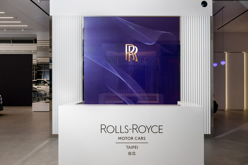 從客戶踏入全新勞斯萊斯汽車台北展示中心的那一刻起,這裡便為他們提供沉浸式的體驗:展廳大門的設計靈感源自勞斯萊斯著名的希臘帕德嫩神廟格柵,巧妙地展現了內部的奢華與精緻,令人不禁心生嚮往。門上方則矗立著勞斯萊斯標誌性的歡慶女神 (Spirit of Ecstasy) 立標優雅的迎接每一位貴賓的到來。這座展示勞斯萊斯極具現代感的三車展廳,是品牌全球策略的重要組成部分。勞斯萊斯將精品藝廊展演概念 (Galleria) 運用到全新展示空間內,每一部勞斯萊斯車款皆被安置於專屬的 Galleria 之中,透過精心設計的數位影像,在大型螢幕上完美演繹;或藉由動態照明,由變色的懸掛式球形燈組成,創造一種具有動態感的藝術表現,通過不同的色調和波浪般的動態過渡,彰顯勞斯萊斯不同車型的造型和線條強化每一款車型的獨特個性。