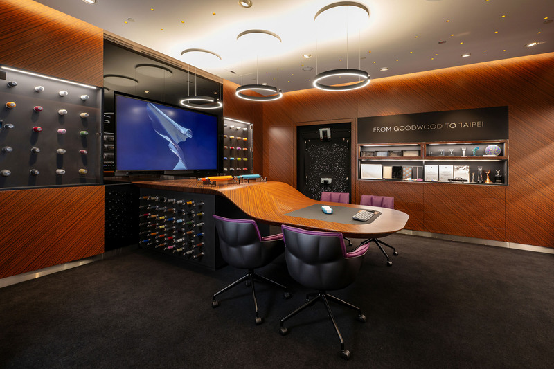 「客製化工坊」(The Atelier) 門口上方刻有亨利•萊斯爵士名言:”TAKE THE BEST THAT EXISTS AND MAKE IT BETTER” (將最好的變得更好) 其設計參照古德伍德勞斯萊斯之家所打造,是激發探索欲望和啟發靈感的地方。這裡陳列著品牌最精湛的工藝之作,包括各種木紋飾板、皮革樣本、色彩繽紛的繡線以及獨特的星光頂篷展示樣品。而車漆樣品以勞斯萊斯標誌性的車身模型造型呈現,讓人輕鬆想像出幾乎無窮無盡的雙色組合,皮革捲繞在帶有勞斯萊斯經典雨傘手柄的長棍上,木紋飾板則被塑造成翼型的橫截面,令人聯想到查爾斯·勞斯在航空領域的卓越成就。這個充滿感官體驗的空間,幫助客戶將夢想中的訂製作品變為現實。
