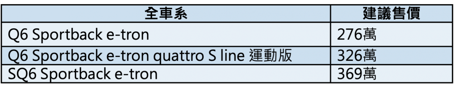 【Audi Q6 Sportback e-tron車系建議售價1】