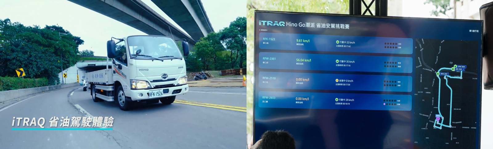 除此之外,為讓車主感受HINO車款絕佳省油效能表現,亦將安排車主親自駕駛HINO 300系5噸車款進行「省油安駕挑戰」,透過「HINO iTRAQ車聯管理系統」,結合日野原廠授權CAN-Bus車輛訊號與先進車聯網科技,於現場看板即時呈現車輛定位、駕駛行為與油耗表現,讓車主深刻感受安全與節能並進的 HINO 駕馭新體驗。