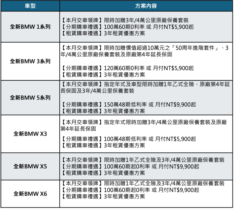 為迎接嶄新的一年,BMW總代理汎德於 2026 年 1 月推出「BMW 新年尊享禮遇」,為消費者與廣大車迷打造尊榮並具彈性的購車方案,僅需月付5,900元起,即可輕鬆入主BMW全車系。或可選擇BMW Yours多元智選租賃方案,從購車彈性到後續保障,全方面滿足不同用車需求,打造最具競爭力的尊榮購車體驗。針對指定年式車型,BMW 進一步加碼推出多項專屬升級禮遇,包括限時加贈一年乙式全險、BMW原廠保養套裝與 BMW 原廠第 4 年延長保固,讓車主在享受駕馭樂趣的同時,也能擁有更周全的用車保障。「BMW 新年尊享禮遇」不僅展現BMW對顧客始終如一的承諾,也為熱愛德系工藝與駕馭樂趣的車主,開啟一條更安心且靈活的入主道路,誠摯邀請所有車迷一同領略 BMW 所蘊藏的非凡魅力與純粹駕馭精神。