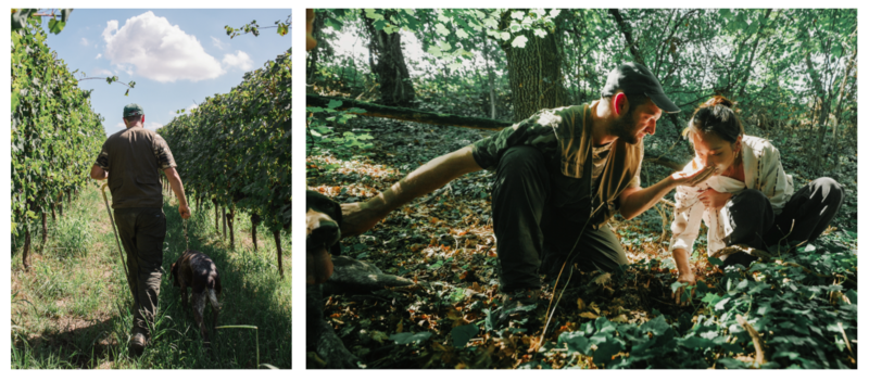 附近的山林裡與獵人與獵犬一同探尋美味松露。