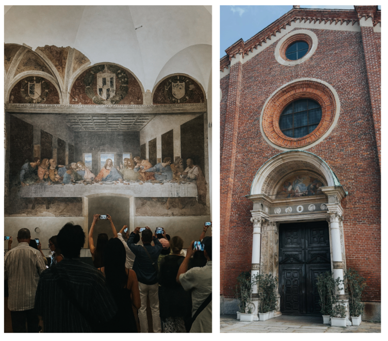 達文西《最後的晚餐》畫作真跡,現存於義大利米蘭的聖瑪麗亞感恩教堂內的修道院餐廳牆上。