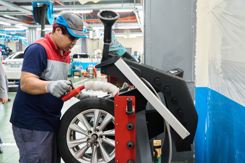 經銷商服務廠使用省力機具設備,降低員工作業時的身體負擔 (國都汽車 TOYOTA三重服務廠)