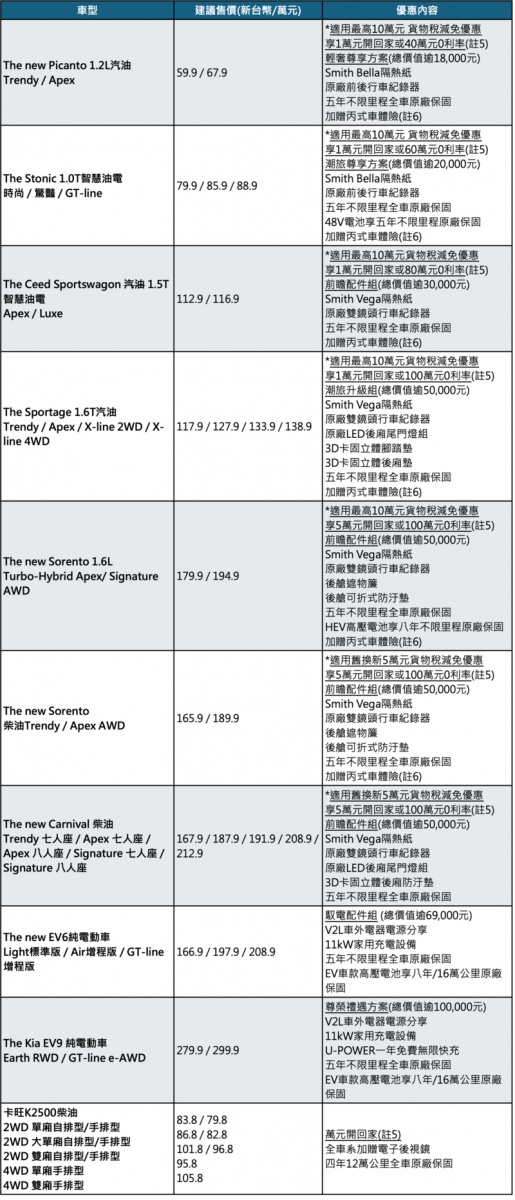 註3:2025年10月Kia全車系優惠一覽