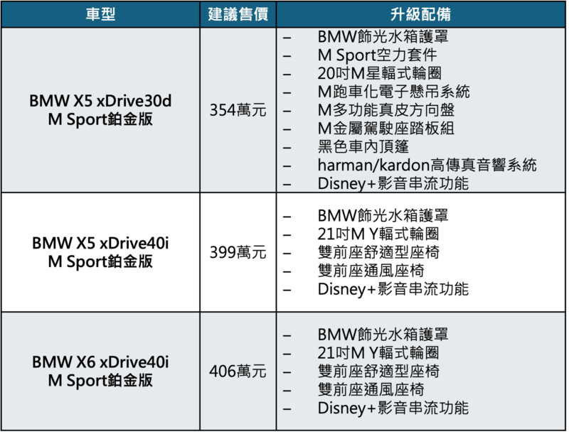 全新年式BMW X5/X6鉑金版 建議售價與升級配備