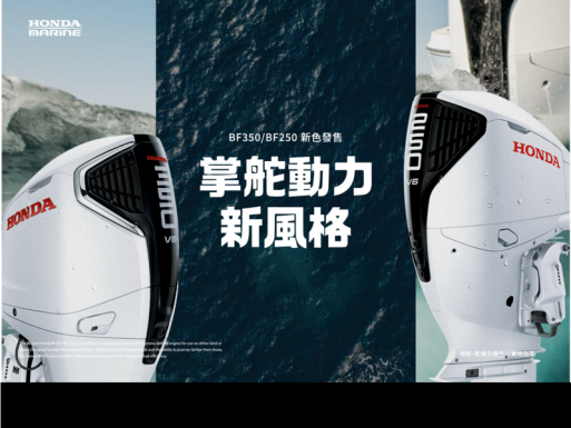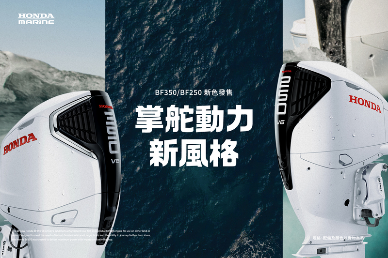 BF350 與 BF250 為 Honda Marine 旗艦船外機產品線,「運動白」新色的導入在維持原有高性能本質之上,提供消費者更具運動風格的外觀選擇。歡迎對船外機有興趣的消費者親臨全台 Honda Marine 經銷據點諮詢了解更多產品相關資訊。