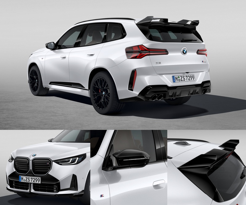 「BMW X3 M Performance Parts曜動版套裝」內含M款高亮黑水箱護罩組、M款碳纖維後視鏡外蓋,並進一步導入專屬三件式M Performance前保定風翼(含中央與左右兩側),全面強化車頭的性能視覺。此套件以空氣力學為核心設計,透過更具張力的線條語彙,勾勒出侵略感十足的車頭輪廓。不僅於高速行駛時有效提升下壓力與穩定性,更藉由立體且剽悍的造型設計,將機能美學與強烈運動氣息完美融合。曜動版套裝讓每一次加速與轉向皆釋放更鮮明的駕馭張力,全面放大BMW X3的運動本質,為追求操控表現與性能風格的車主,打造出極具辨識度的跑格姿態。