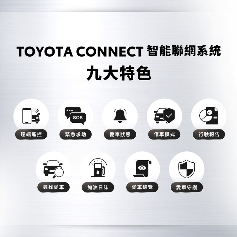 註4:「TOYOTA Connect智能聯網系統」部分功能需搭配4G連網後方能使用,實際功能依照各車型及等級之設定而有規格、外觀等差異。其作動皆有其限制條件,詳情請參閱使用手冊或官網相關QA說明。