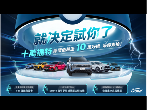 Ford全車系匯聚多元高效動力與先進主被動安全科技,持續為台灣消費者重新定義移動價值。本月特別推出「就決定『試』你了!」購車優惠活動,誠摯邀請您蒞臨全台展示中心,在Ford所帶來的駕馭樂趣與新創科技同時,更有機會將東京機票與總價值逾10萬好禮帶回家!