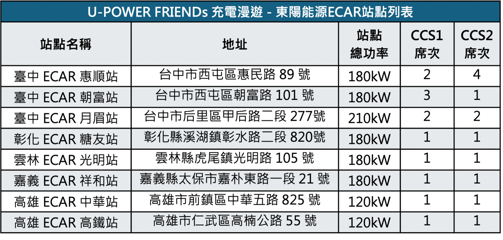 推動電動車在臺灣的發展,一直是 U-POWER 的願景,為提升會員的充電選擇並擴大服務覆蓋範圍,U-POWER 於2025年推出「U-POWER FRIENDs 充電漫遊夥伴」服務,攜手具備穩定營運能力與服務品質的充電營運商,讓會員在不同場域亦能延續熟悉且一致的充電體驗。此次,東陽能源旗下電動車充電站品牌 ECAR 正式加入 U-POWER FRIENDs充電漫遊夥伴行列,進一步強化中南部充電網絡布局,擴大整體服務觸及範圍。