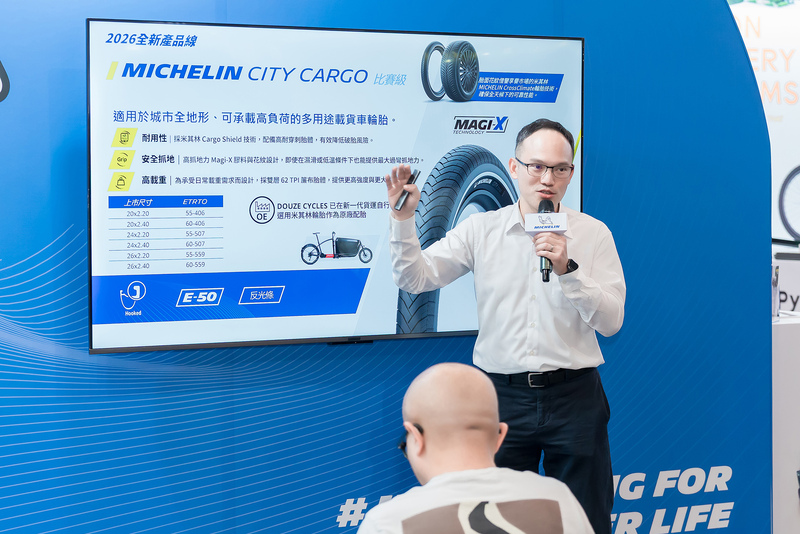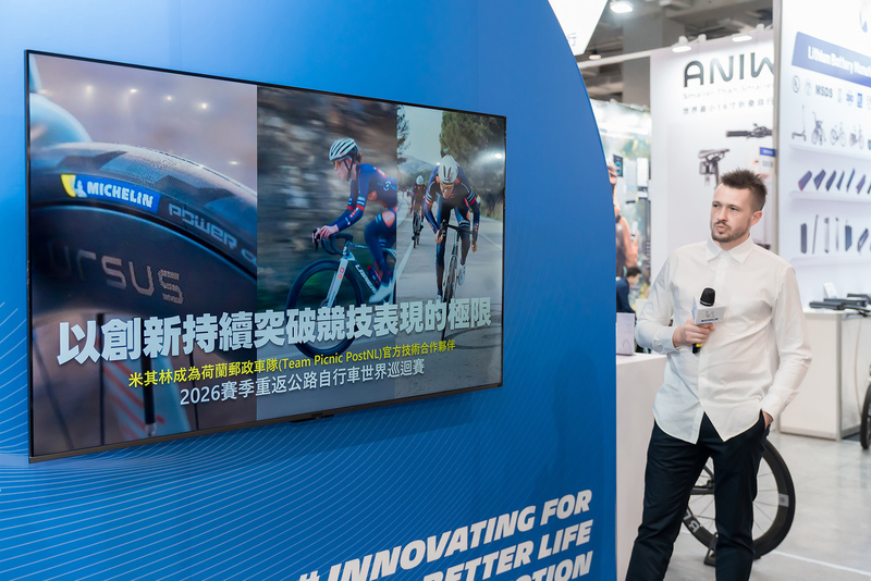 3 月 25 日至3月 28 日,米其林於2026台北國際自行車展展示其在自行車輪胎領域持續深化的技術積累與產品布局。展會期間,米其林正式發布 6 大新品,並公布 2 項重磅賽事合作,進一步彰顯品牌在公路騎乘及多元應用場景中的專業實力。
