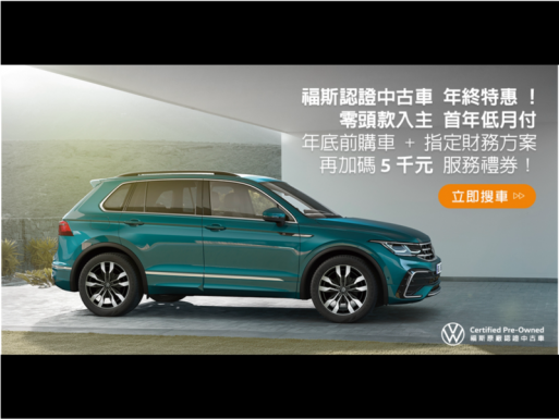 Certified Pre-Owned福斯原廠認證中古車秉持德國原廠標準,矢志帶給台灣消費者嚴謹專業的優質服務,所有車款皆經133 項全面車況認證仔細篩選審核,公開透明刊載於官方網站,選購可靠又便利,此外,8大保證讓消費者從購車至售後皆能享有完善保障,建立值得信賴的中古車品牌首選。即日起年終特惠熱烈開跑,入主即享零頭款首年低月付優惠,年底前指定財務方案再獲5,000元服務禮券,歡迎前往授權展示中心鑑賞試乘,在新的一年與可靠的出行夥伴展開耀眼征途。