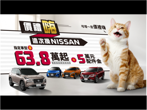 NISSAN響應政策,讓消費者好事成雙,限時推出「價禮嗨 這次換NISSAN」超值優惠,誠摯邀請消費者把握購車良機,蒞臨NISSAN全國各大展示中心,享受超厲害的優惠回饋,詳情請參閱官方網站: